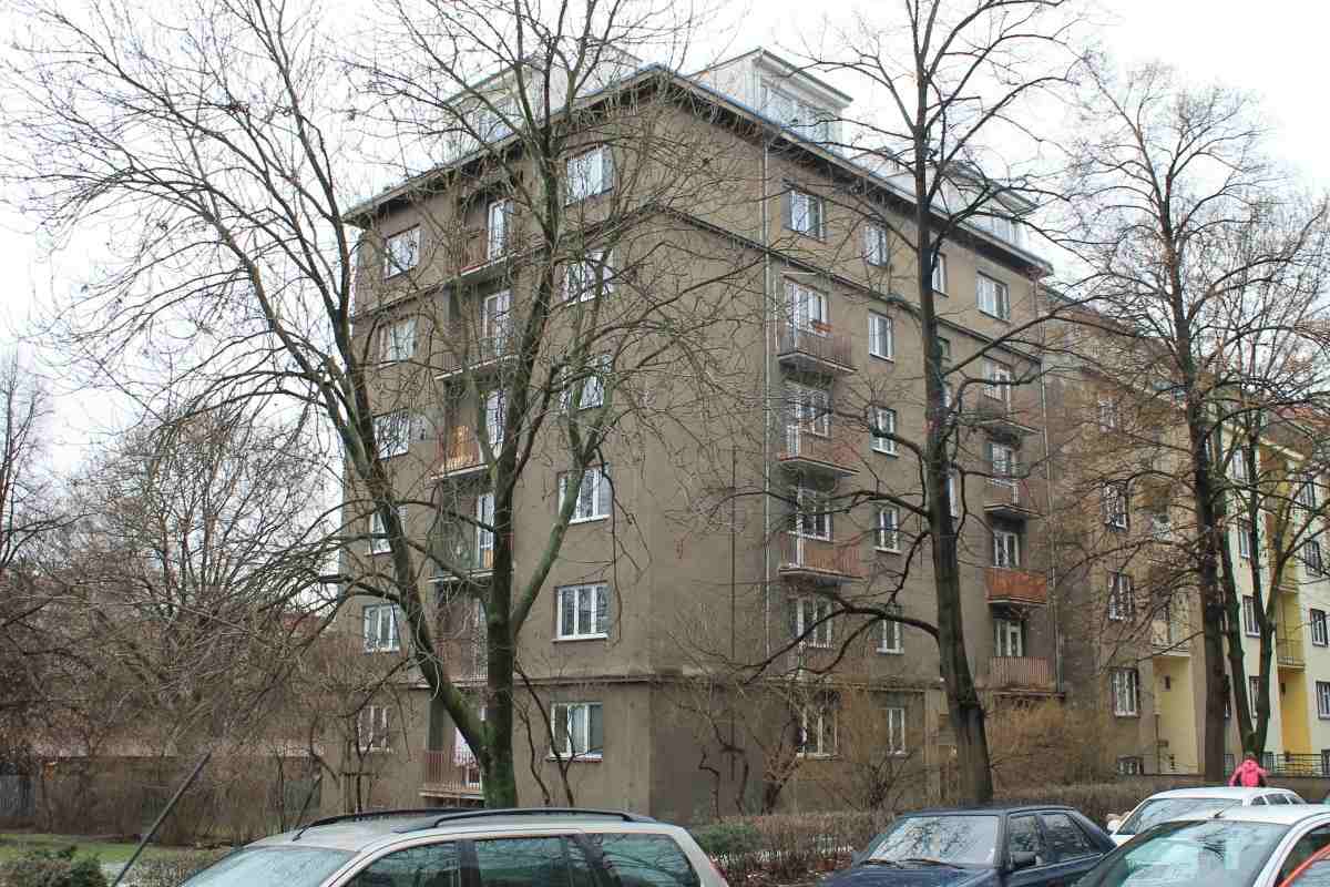 Bytová jednotka se nachází ve druhém nadzemním podlaží podsklepeného (2.PP) šestipodlažního (5.NP + podkroví objektu kombinované konstrukce betonové prvky + zdivo) s výtahem. Bytová jednotka je charakterizována jako 1 + 0 sestává z pokoje, koupelny, WC, předsíně a balkonu. K bytové jednotce nepatří sklepní kóje k užívání. Okno dřevěné zdvojené s francouzskými dveřmi na balkon, dveře do koupelny, WC a pokoje původní prosklené do ocelových zárubní , vstupní hladké plné do ocelové zárubně. Podlahy na WC, v koupelně a balkonu dlažba, v předsíni koberec a v pokoji s malou linkou koberec na lino. V pokoji je umístěna malá linka s nerez dřezem. V koupelně vana se závěsem a umyvadlo s keramickým obkladem stěn, WC samostatné se zavěšenou nádržkou bez obkladu stěn pouze sokl. V předsíni botník s věšákem. Objekt byl kolaudován v roce 1958. Stavebně technický stav bytové jednotky je udržovaný,vyžaduje menší stavební úpravy a opravy. Objekt jako celek je v dobrém stavebně technickém stavu.