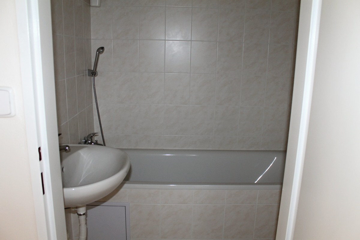 Bytová jednotka se skládá z pokoje, předsíně, koupelny s WC a spíže. Okno dřevěné špaletové ošetřené, dveře do koupelny hladké do ocelové zárubně, do spíže hladké původní ošetřené se zámkem, do pokoje ze dvou třetin prosklené do ocelové zárubně. Vstupní dveře původní do dřevěné zárubně renovované. Podlaha v předsíni, spíži a koupelně s WC dlažba, v pokoji PVC . Koupelna vybavena vanou a umyvadlem, WC mísou kombi a pod stropní konstrukcí je el. boiler (vše 2011). Vytápění - WAW 1 ks . V pokoji připraveno napojení pro kuchyňskou linku nejsou provedeny obklady ke kuchyňské lince. Vedení plynu k WAW je provedeno povrchově po stěně.