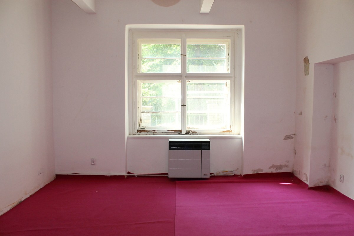 Bytová jednotka se skládá z pokoje, kuchyně, předsíně, WC - dle vymezení jednotek. Skutečný stav - předsíň užívaná jako kuchyň, koupelna s WC a dva pokoje. Okna dřevěná špaletová původní vyžadující ošetření, dveře do koupelny s WC dýhované do ocelové zárubně, dveře do pokoje z předsíně (kuchyně) a pokoje původní dřevěné rámové do dřevěných zárubní ošetřené. Vstupní dveře dřevěné rámové do dřevěné zárubně původní. Podlahy v předsíni (kuchyni) v pokoji PVC imitace dřeva a v pokoji betonová mazanina s kobercovou krytinou, v koupelně s WC dlažba. Koupelna vybavena umyvadlem, sprchou a WC mísou kombi (2003) s obklady stěn do úrovně dveřní zárubně. Kuchyň se standardní linkou s dřezem, digestoř a bez sporáku, provedeny obklady k lince. Vytápění lokální WAW (2006) s ohřevem vody el. boilerem zavěšeným pod stropní konstrukcí v koupelně (2003). V parapetní stěně v kuchyni pod parapetní skříň.