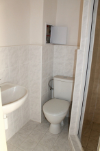 Bytová jednotka se nachází v pátém nadzemním podlaží pětipodlažního , podsklepeného zděného objektu bez výtahu. Bytová jednotka sestává z pokoje a nově odděleným koutem pro kuchyňskou linku, koupelny s WC, předsíně a malého balkonku. Okna plastová, dveře hladké do ocelových zárubní, dveře balkonku plastové atriové, dveře vstupní hladké do ocelové zárubně z interiéru polstrované koženkou. Podlaha v pokoji plovoucí laminátová, v kk, předsíni a koupelně s WC dlažba, na balkonku původní dlažba. Koupelna vybavena sprchovým koutem, WC mísou a umyvadlem s obklady stěn v části 1500 mm a v části 2000 mm. Vytápění ústřední s ohřevem vody.