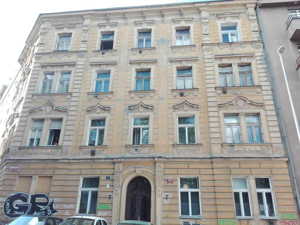 Bytová jednotka se nachází ve třetím nadzemním podlaží podsklepeného pětipodlažního zděného objektu bez výtahu. Bytová jednotka se sestává ze dvou pokojů, kuchyně, WC, předsíně, spíže a koupelny. Okna dřevěná špaletová, okno ve spíži jednoduché. Dveře do kuchyně dřevěné rámové, částečně podsklepené do dřevěných zárubní původní, dveře do pokoje a mezi pokoji původní dvoukřídlé do dřevěné zárubně, dveře na WC, koupelny a spíže původně dřevěné rámové do dřevěných zárubní. Vstupní dveře původní dřevěné dvoukřídlé do dřevěných zárubní ve vrchní části nad zárubní s řežbou. V předsíni válená klenba. Podlahy v koupelně starší dlažba, na WC lino, v předsíni prkená podlaha, ve spíži betonová mazanina, v kuchyni lino a pokojích parkety. Kuchyň bez vybavení, obklady k lince ze šedesátých let. WC mísa se závěsnou nádržkou bez obkladů. Vytápění WAW (2007) a ohřev vody karmou. Rozvody plynu po povrchu stěn.