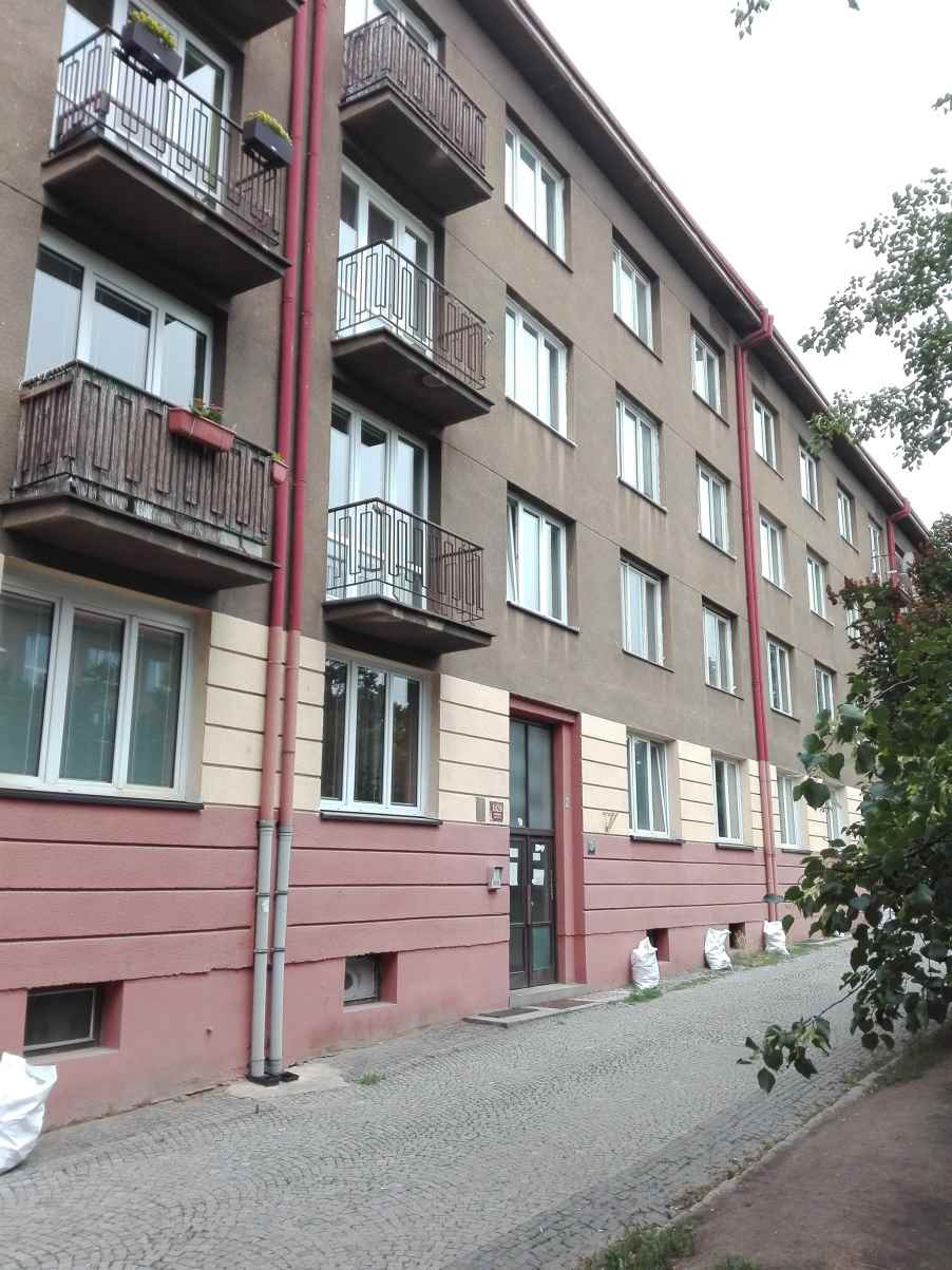 Bytová jednotka se nachází ve druhém nadzemním podlaží čtyřpodlažního podsklepeného zděného objektu bez výtahu. Bytová jednotka sestává ze tří pokojů, kuchyně, předsíně, koupelny, WC a spíže. K bytové jednotce patří sklepní kóje k užívání umístěná v 1.PP a není započítána do podlahové plochy bytové jednotky. Okna dřevěná zdvojená, dveře do dvou pokojů a kuchyně prosklené do ocelových zárubní (u kuchyňských chybí spodní část prosklení), dveře do pokoje dvoukřídlé prosklené do ocelové zárubně a dveře do spíže, koupelny a WC hladké do ocelové zárubně. Vstupní dveře hladké původní do ocelové zárubně. Podlahy v pokojích parkety, v kuchyni, spíži, koupelně původní dlažba a v předsíni a WC lino imitace korku. Koupelna vybavena umyvadlem a vanou s nižšími bílými obklady, WC s nádržkou zavěšenou v technickém prostoru šachty, bez obkladu stěn. Kuchyň bez linky pouze sporák plynový a zastaralá digestoř. V předsíni původní vestavěná skříň. Vytápění ústřední, osazeny původní plechová tělesa. Bytová jednotka je v původním stavu, odhadem v osmdesátých letech byla provedena výměna umyvadla a podlaha ve spíži a předsíni.