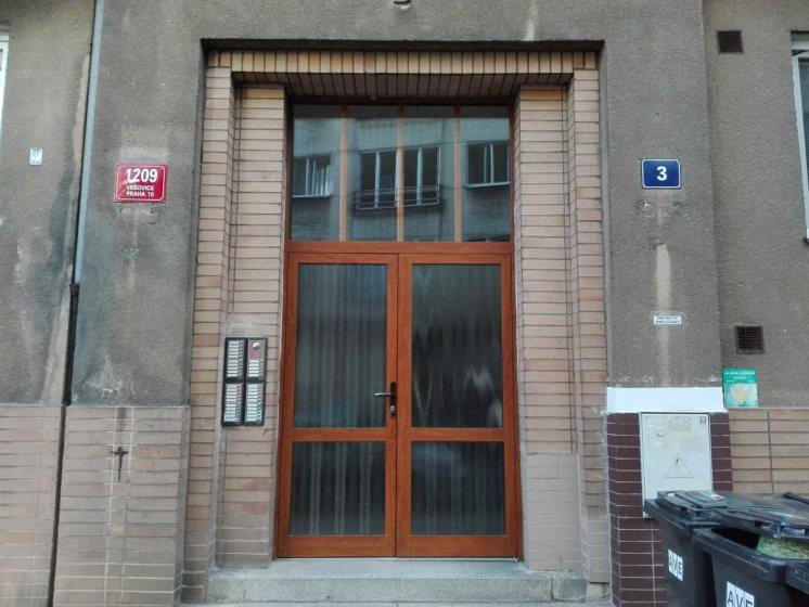 Bytová jednotka se nachází ve čtvrtém nadzemním podlaží podsklepeného šestipodlažního zděného objektu s výtahem. Bytová jednotka je charakterizována jako 1 + 1 a sestává z pokoje, koupelny, WC, předsíně, kuchyně a balkonu k užívání ze společných částí domu. Okna plastová, včetně francouzského, dveře do pokoje hladké částečně prosklené do ocelové zárubně, dveře do kuchyně ocelová zárubeň - chybí dveřní křídlo, na WC a do koupelny hladké do ocelových zárubní, vstupní dveře hladké původní do ocelové zárubně. Podlaha v pokoji parkety, v kuchyni, spížní skříni, předsíni PVC, na WC a koupelně novější dlažba, podlaha balkonu teracová dlažba. Kuchyň vybavena původní linkou s nerez dřezem, sporákem (1998) s obkladem stěn k lince. Koupelna vybavena vanou a umyvadlem s nižším obkladem stěn, WC samostatné s mísou se zavěšenou nádržkou, bez obkladu stěn pouze sokl. Vytápění ústřední. V předsíni původní vestavěné skříně s jedním novým křídlem. Objekt byl kolaudován kolem roku 1950.