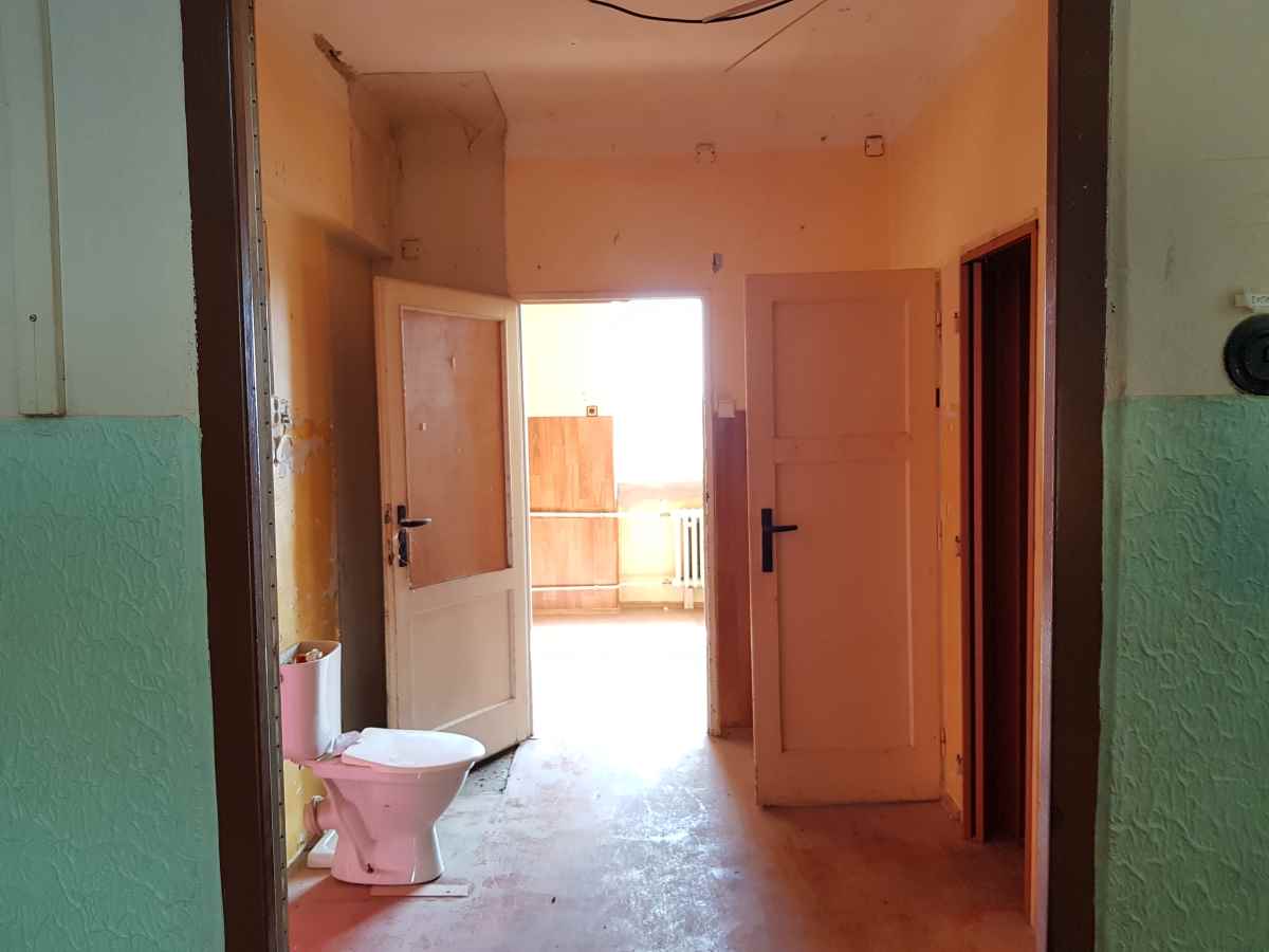 Bytová jednotka se nachází v pátém nadzemním podlaží podsklepeného šestipodlažního zděného objektu s výtahem. Bytová jednotka sestává z pokoje, kuchyně, WC, předsíně, koupelny a spíže dle vymezení jednotek. Příčky hygienického zázemí siporexové. Okna plastová, dveře spíže dřevěné rámové do ocelové zárubně, dveře do kuchyně rámové prosklené do ocelové zárubně, do pokoje pouze ocelová zárubeň bez dveřního křídla a do koupelny mezi stávající ocelovou zárubeň lamelové zatahovací plastové dveře, vstupní dveře hladké do ocelové zárubně. Podlahy - v pokoji parkety, ve spíži původní dlažba v koupelně dlažba, na WC, předsíni a kuchyni PVC imitace parket. Koupelna vybavena malou vanou se schodem a umyvadlem, proveden obklad stěn, WC samostatné kombi bez obkladu stěn. Kuchyň vybavena volně stojícím plynovým sporákem bez obkladu k lince. Rohová část stěn kuchyně polepena PVC. Vytápění ústřední.
