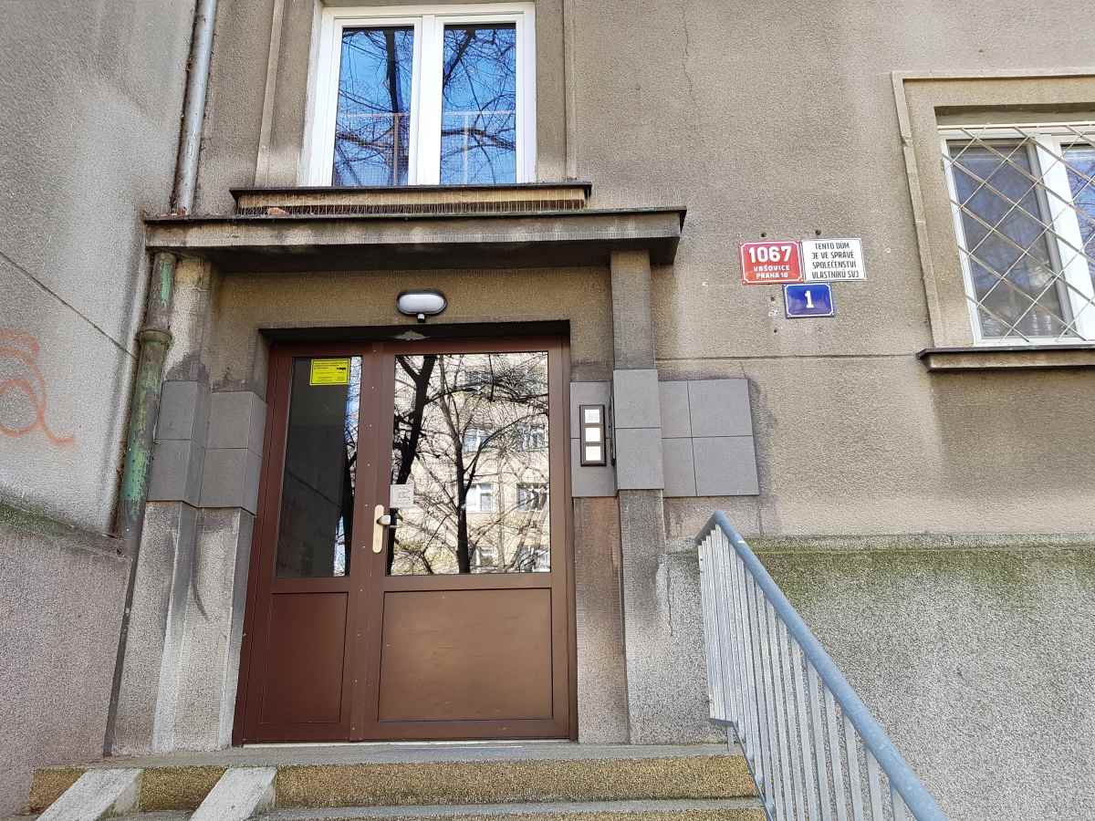 Bytová jednotka se nachází v prvním podzemním podlaží podsklepeného šestipodlažního zděného objektu s výtahem. Bytová jednotka sestává ze dvou pokojů, kuchyně, koupelny s WC, předsíně - dle prohlášení vlastníka. Skutečný stav tři pokoje, kuchyňský kout v předsíni, koupelna s WC. Okna plastová s mřížemi (cca. 1 metr nad terénem), dveře do dvou pokojů, koupelny s WC dřevěné rámové do ocelových zárubní, dveře do pokoje hladké prosklené do ocelové zárubně. Vstupní dveře hladké do ocelové zárubně z interiéru polstrované koženkou. Podlahy ve dvou pokojích a předsíni s KK plovoucí laminátové a v pokoji parkety (po zatečení), v koupelně s WC novější dlažba. Koupelna vybavena vanou, menším umyvadlem a WC mísou kombi s ker. obklady do výšky 2100 mm. Kuchyň umístěna v předsíni u vstupu do koupelny s WC bez linky s obkladem stěny k lince a plynovým sporákem. Předsíň do výšky 1200 mm obložena palubkami. V bytové jednotce byly provedeny stavební úpravy hygienického zázemí plovoucí podlahy, obklad v předsíni a přemístění kuchyně.