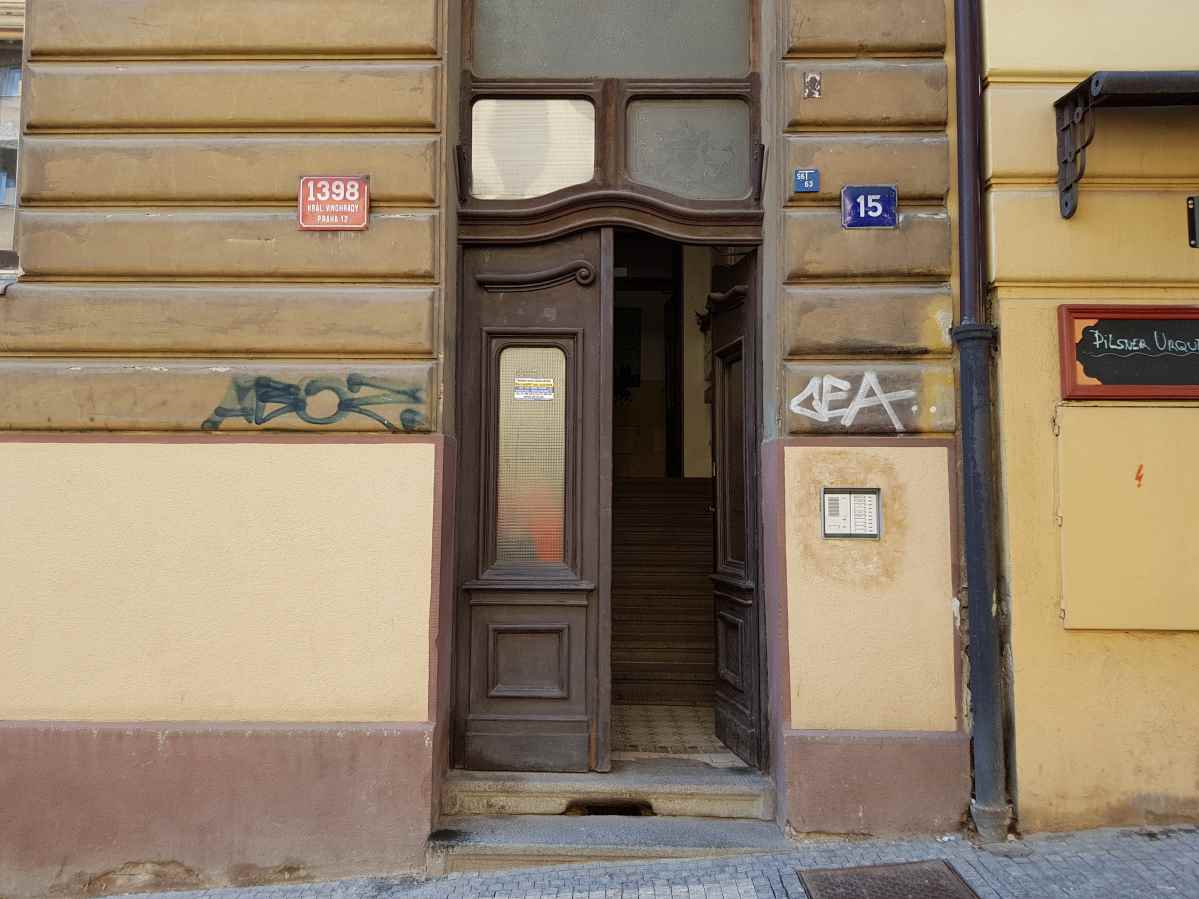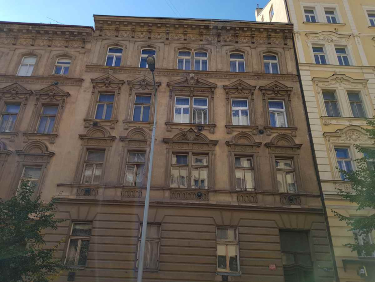 podsklepeného zděného objektu bez výtahu. Bytová jednotka sestává z pokoje, kuchyně, předsíně, WC, koupelny a spíže dle prohlášení vlastníka. Skutečný stav - pokoj, pokoj s kuchyňským koutem, koupelna, WC a předsíň. Okna pokojů dřevěná špaletová, okno kuchyňského koutu dřevěné zdvojené, dveře do koupelny na WC dřevěné do dřevěných zárubní, dveře do pokoje dvoukřídlé dřevěné z poloviny prosklené, dveře do pokoje s kk dřevěné z poloviny prosklené do dřevěné zárubně. Vstupní dveře původní dřevěné z interiéru hladké do dřevěné zárubně. Podlaha v pokoji a předsíni parkety, v pokoji s KK korek a v koupelně a WC dlažba. Koupelna vybavena vanou a umyvadlem s obkladem stěn. WC samostatné s mísou kombi a nižším obkladem stěn a je zde umístěna skříňka. Kuchyňský kout vybavený linkou s barovým pultem, plynovým sporákem s digestoří a nerez dřezem, nad kuchyňským koutem je proveden nižší strop, který je využit jako úložný prostor. V předsíni skříně a pod stropní konstrukcí úložný prostor přístupný dřevěným