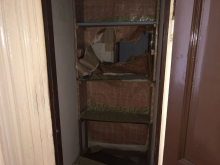 Bytová jednotka se nachází ve čtvrtém nadzemním podlaží pětipodlažního podsklepeného zděného objektu bez výtahu. Bytová jednotka sestává z pokoje, kuchyně, koupelny, WC a předsíně - dle prohlášení vlastníka budovy. Skutečný stav - předsíň, pokoj, kuchyň, WC a spíž. Koupelna chybí - malé umyvadlo v kuchyni. Okna dřevěná špaletová, okno ve spíži a na WC dřevěné jednoduché (do světlíku). Dveře do spíže a na dřevěné rámové do dřevěné zárubně otevíravé na klíč, dveře do kuchyně dřevěné rámové z jedné třetiny prosklené do dřevěné zárubně, dveře mezi pokoji dvoukřídlé dřevěné rámové do dřevěné zárubně částečně prosklené a dveře do pokoje dřevěné rámové do dřevěné zárubně. Vstupní dveře dřevěné rámové dvoukřídlé do dřevěné zárubně. V předsíni klenba valená. V oblasti jednoho osvětlení v pokoji (strop) štukatérská ozdoba. Podlaha v pokoji a kuchyni lino, na WC a ve spíži původní dlažba a předsíni lino. WC vybaveno mísou se zavěšenou nádržkou a obklady stěn nejsou. V kuchyni plynový sporák bez linky a malé umyvadlo, proveden latexový nátěr k lince. Vytápění na pevná paliva, bez kamen pouze možnost napojení na komínové těleso.