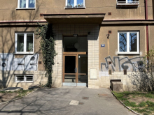 Bytová jednotka se nachází ve druhém nadzemním podlaží podsklepeného zděného objektu se sedmi nadzemními podlažími s výtahem. Bytová jednotka sestává ze dvou pokojů, kuchyně, předsíně, koupelny, WC - dle vymezení jednotek. Okna plastová s vnitřními parapety z teracových desek a dlažby, okénko do koupelny a na WC původní dřevěné do světlíku. Dveře koupelny, WC a mezi pokojem a kuchyni hladké do dřevěné zárubně, dveře do kuchyně, a pokojů prosklené. Vstupní dveře hladké původní do dřevěné zárubně. Podlahy v pokojích parkety, v kuchyni lino, v předsíni, WC a koupelně PVC imitace dřeva. Koupelna vybavena vanou a umyvadlem s nižšími bělnicovými obklady, WC samostatné s mísou se zavěšenou nádržkou bez obkladů stěn, pouze soklík. Kuchyň vybavena původní linkou s plastovým dřezem, plynovým sporákem s původními obklady k lince. V rohové části spížní původní skříň. Vytápění s ohřevem vody ústřední, radiátory litinové.