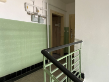 Bytová jednotka se nachází ve třetím nadzemním podlaží podsklepeného objektu s třemi nadzemními podlažími bez výtahu. Bytová jednotka je podkrovní bytovou jednotkou a sestává z pokoje, předsíně, koupelny, WC dle vymezení jednotek. Okno dřevěné špaletové, okno WC, koupelny a předsíně dřevěné jednoduché do světlíku. Dveře do koupelny chybí pouze dřevěná zárubeň, WC dveře hladké do dřevěné zárubně a do pokoje dřevěné rámové z poloviny prosklené do dřevěné zárubně. Vstupní dveře hladké do dřevěné zárubně původní. Podlaha v předsíni teracová, v koupelně jekor, na WC lino a v pokoji prkenná podlaha. Koupelna vybavena vanou, umyvadlem a v jednoduché staré lince dřez, keramické obklady v oblasti vany. WC samostatné mísou se zavěšenou nádržkou postavenou na soklu bez obkladů stěn. Nad vanou je umístěna karma a nad umyvadlem malý el. ohřívač vody. V předsíni provedeno snížení stropu pomocí palubek. Kuchyň chybí. Vytápění - WAW.