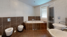 Exkluzivně nabízíme rodinný dům o dispozici 9+kk v Třinci – Lyžbice. Dům byl kolaudován v roce 2005. Jedná se o jednopodlažní rodinný dům s obytným podkrovím a pultovo valbovou střechou. Dům je situovaný v klidné lokalitě Lyžbic v zástavbě nadstandartních rodinných domů. Celková výměra pozemků činí 2965 m², zastavěná plocha RD 455 m² a podlahová plocha 357 m². Dům má 9 obytných místností, a dvě místnosti širšího využití, krytou terasu cca 45 m² a garáž v domě. Na pozemku se dále nachází bazén 8 x 4m ovál, zahradní dům, letní kuchyně a vinný sklep. Skladba 1.NP garáž se skladovou místností, vanou a sprchovým koutem, obývací pokoj s kuchyní a špajzem cca 100 m², schodištěm do podkroví, sklad, technická místnost, průchozí koupelnou do ložnice se šatnou, pokoj se šatnou, pokoj, pokoj, kancelář, letní zahrada – taneční parket (zimní zahrada) cca 50 m² s výhledem na bazén a zahradu. V podkroví se nahází samostatný byt s dispozicí dva pokoje a koupelna s toaletou. Zahrada je osazena skalkami s okrasnými dřevinami, bazén je od zahrady oddělen břidlicovými zídkami a zapuštěnými okrasnými kameny s dřevinami vytvářejícími samostatnou relaxační zónu, raritou je uměle vytvořený kopeček s meditačním zákoutím schovaným mezi vzrostlými stromy, pod kopečkem je situován vinný sklípek. Na pozemku je dále vkusně umístěna letní kuchyně se zázemím a zahradní domeček. Dům je osázen kanadským šindelem s lokálními opravami, střecha i strop jsou izolovány vatou, obvodové zdivo z materiálu Porotherm je zatepleno polystyrénem. Dům je vytápěn plynovým kotlem zn. Vailant, ohřev teplé vody zajišťuje boiler zn. Vailant. Teplo je v domě rozvedeno topnými tělesy (plechové radiátory) a podlahovým topením. Výplně plastových oken jsou dvojité. V dané lokalitě je plná technická a dopravní infrastruktura (elektřina, vodovod, plyn a kanalizace).