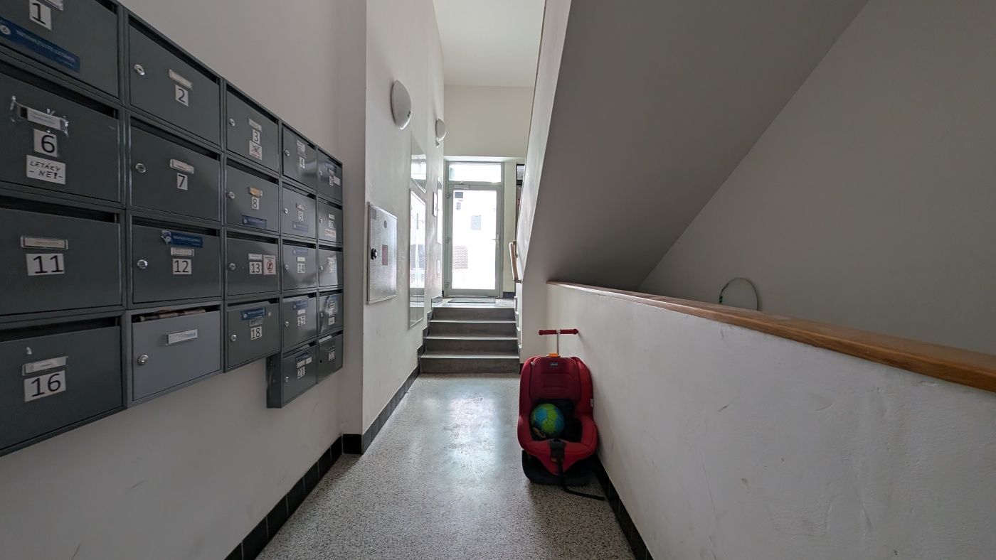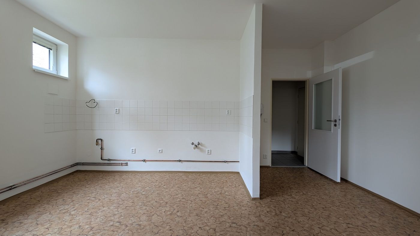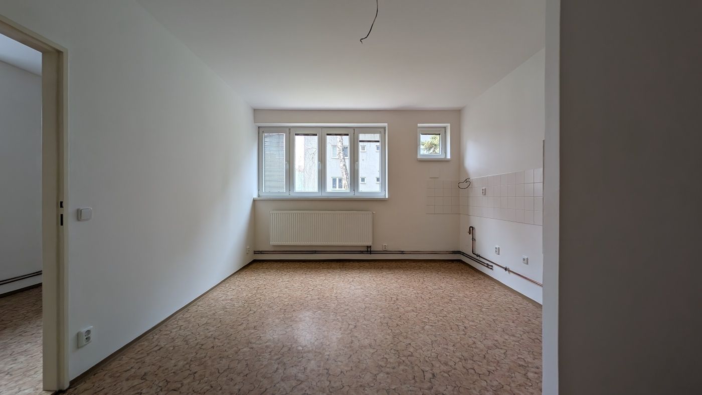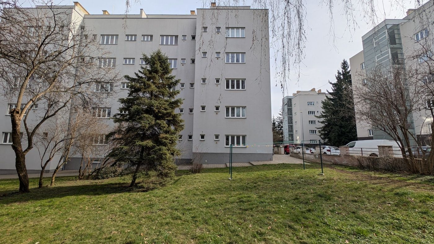 Přízemní byt 1+1 nabízí kuchyni o výměře 20 m² a samostatný pokoj s výhledem do zeleně. Unikátním prvkem jsou přírodní korkové podlahy v obytných částech, které doplňují radiátory pod okny. Koupelna je vybavena vanou. Byt se nachází v těsné blízkosti parku Kajetánka a je nabízen k okamžitému pronájmu bez kuchyňské linky.
