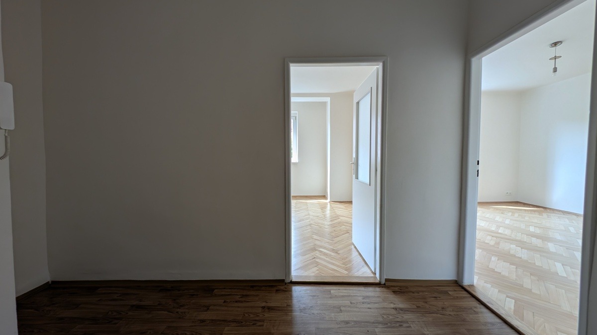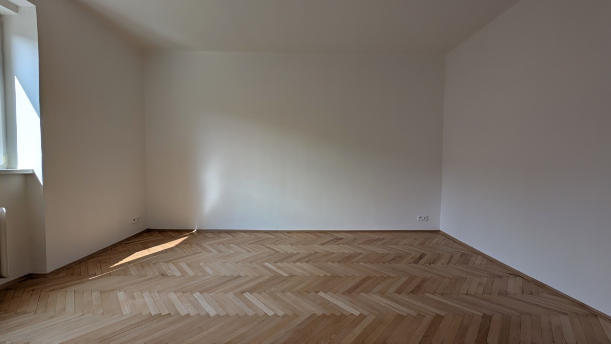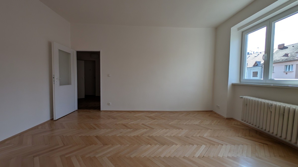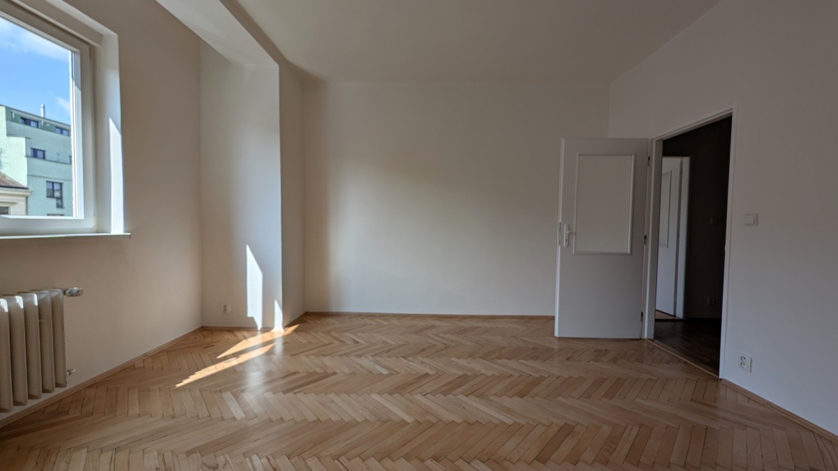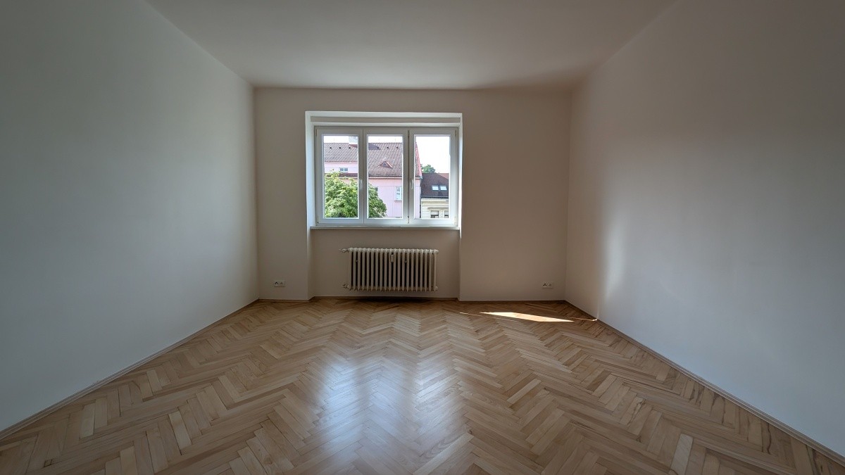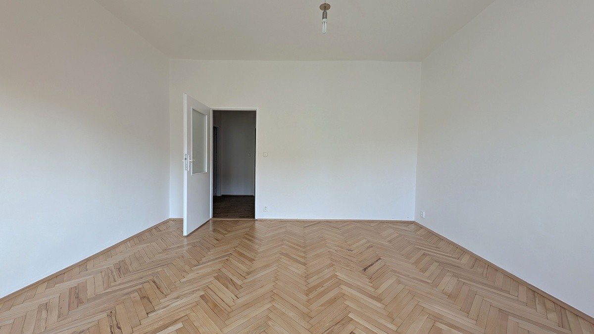 Prostorný byt 2+1 ve 3. NP domu s výtahem nabízí dva samostatné, neprůchozí pokoje o výměrách přes 19 m², oba osazené radiátory. Centrální část tvoří kuchyně s novou dlažbou. V pokojích jsou repasované původní parkety. V bytě se nachází koupelna a druhá samostatná toaleta. Jednotka prošla kompletní rekonstrukcí rozvodů a povrchů.